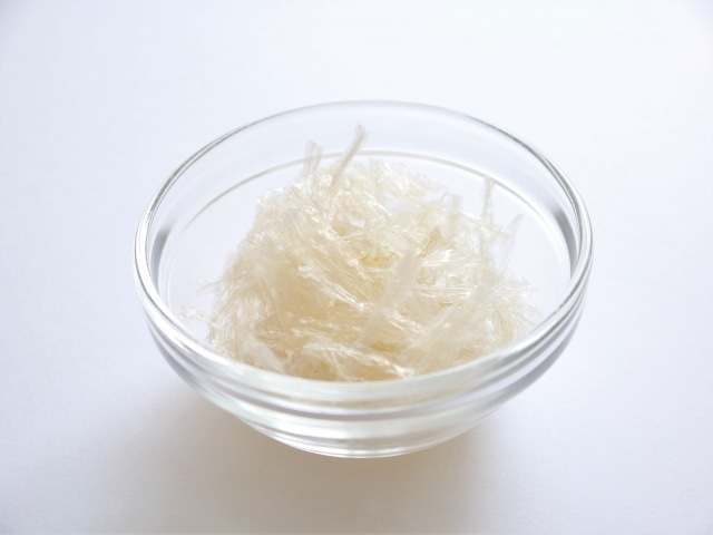 寒天紅藻類、特にテングサ・オゴノリという海藻が原料。成分のほとんどが食物繊維となっており、あらゆる食品の中でトップクラスの食物繊維を含むことから、様々な有用性を持つとされています。 -